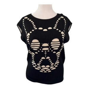 RVN Black & Tan Cutout Illusion Ghost Frenchy Short Cap Sleeve Knit Top Size Small