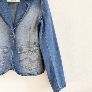 R.V.T. Jeans Womens Jacket Ombre Blue Denim Buttons Pockets Stitching M