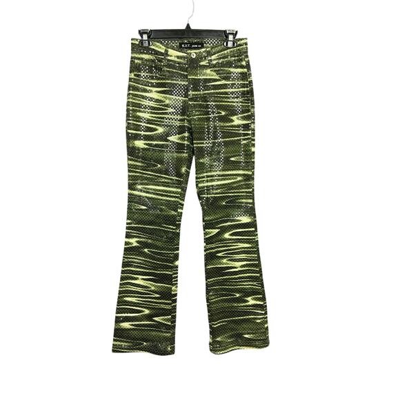 R.V.T. Y2K Vintage Funky Camo Swirl Shiny Flared Bootcut Pants Size 9/10 Bratz