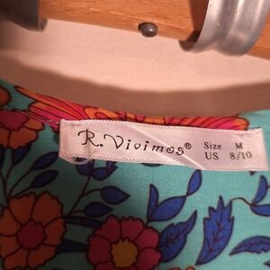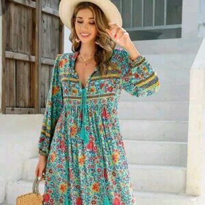 R.Vivimos Women Long Sleeve Floral Print V Neck Tassel Bohemian Midi Dress Med