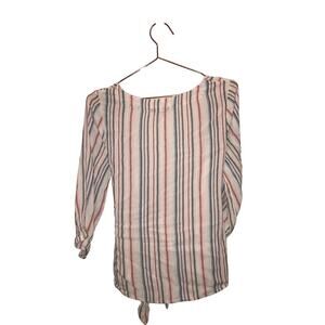 RW & CO wrap tie striped viscose blouse size small