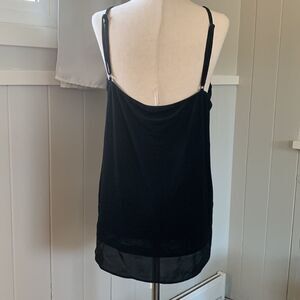 Cute sheer hem detail and neckline- adjustable straps Material is soft and stretchy
