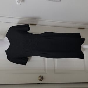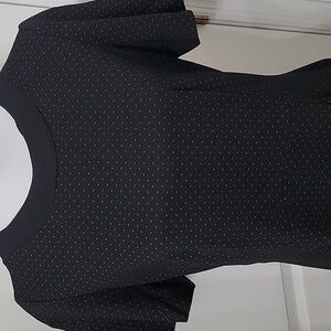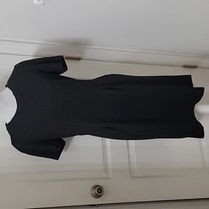 RW&Co Size L Black with White Dots Sheath Dress, Back Zipper Closure, Short Sleeve. Solid Black Neckline. Please refer to measurements in photos to ensure proper fit. Shown on size 6 mannequin.