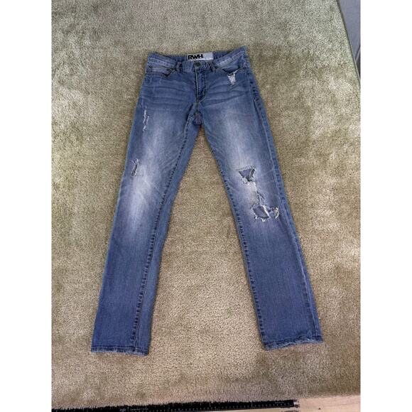 RWH Mens Size 30 Blue Stretch Pocket Mid Rise Straight Jeans 30x33 D993