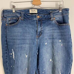 RWN by Rawan Women's The Straight Leg Distressed Painted Raw Hem Jeans Size 16
