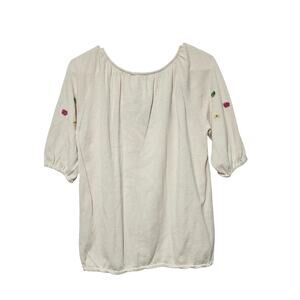 RXB Blouse Embroidered Floral Ivory Knitted Cotton Women's Size Small