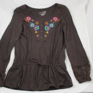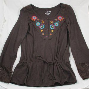 RXB Brown Tunic Top with Embroidery - Size Small (Pre-Owned)