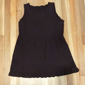 Chocolate brown tunic sweater vest tank embroidered floral top.