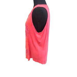 RXB Coral Sleeveless Tunic Top Embroidered Split Neckline L Resort Travel Casual