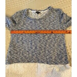 RXB Top Sz Large Blue & White Distressed Wide Eyelet Lace Hem + Stretch Pullover