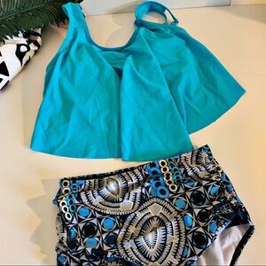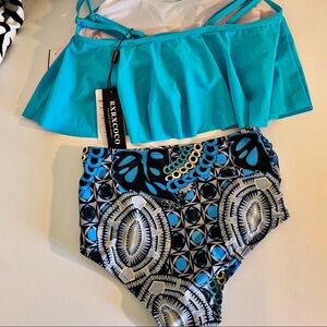 NWT RXRXCOCO Turquoise Flounce Top Print Bikini! S