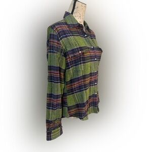 RYAN Michael Embroidered Western Tartan Shirt Ruffle Long Sleeve Snap button closure