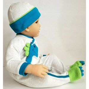 lifelike, weighted, poseable baby boy doll with 'Real Touch' vinyl skin & hand-rooted hair.