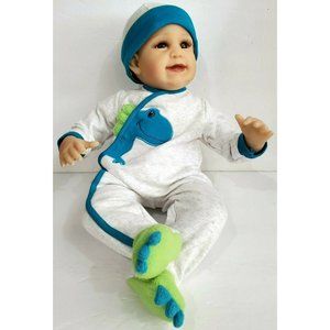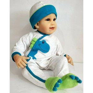 lifelike, weighted, poseable baby boy doll with 'Real Touch' vinyl skin & hand-rooted hair.