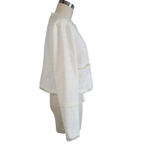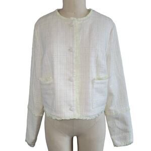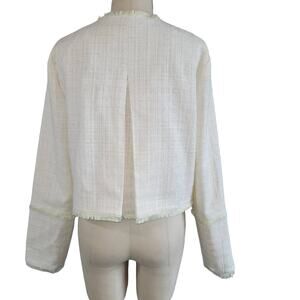 RYEGRASS Cropped Tweed Fringe Jacket Size M Cream Pistachio Green Parisian Chic