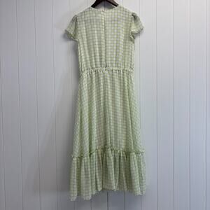 RYEGRASS Womens Pastel Checked Cottage Prairie Ruffled Midi Dress Size M Chiffon