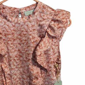 RYEGRASS womens white/copper pattern blouse, ruffle, 100% poly w-137