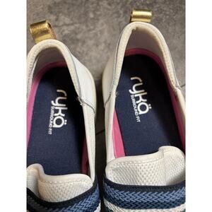 RYKA HAZE Surround Fit Slip-On Shoe White Mesh Leather Striped Strap Sz 11 M
