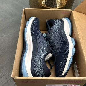 Feel the power of performance with every step in this premium sneaker that goes from walking to running with ease. BEST FOR: High-performance fitness walking and Light running. PERFORMANCE TECH: Full-length RE-ZORB responsive cushioning for exceptional shock absorption and impact protection and Skeletal Guidance System for built-in support under the arch. MADE FOR WOMEN FIT: Designed for a woman's unique foot shape, muscle movement, and build with a narrower heel, roomier toe, and softer foot cushioning. MATERIALS: Premium breathable engineered mesh and padded collar for extra cushioning. CLOSURE: Lace-up front for a secure fit and Pull tabs for easy on/off. INSOLE: Premium anatomical insole with RE-ZORB cushioning for shock absorption. MIDSOLE: Lightweight EVA for soft cushioning. OUTSOLE: Durable rubber sole. WEIGHT: 278 grams per shoe. HEEL-TO-TOE DROP: 8 mm.