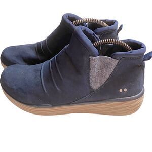 RYKA Niah Faux Suede Sz 10 Blue Slip-on Water Repellent Pleat Detail Ankle Boots