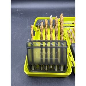 Take on a wide range of drilling jobs with the RYOBI 21-Piece Titanium Drill Bit Set (Model A972102). These high-quality titanium-coated bits are built for durability and extended life, reducing friction and heat while drilling through wood, plastic, and metal. The set includes a variety of commonly used sizes and comes in a sturdy storage case for easy organization and transport. Perfect for both DIY projects and professional use. Missing 3 bits. Great value!!
