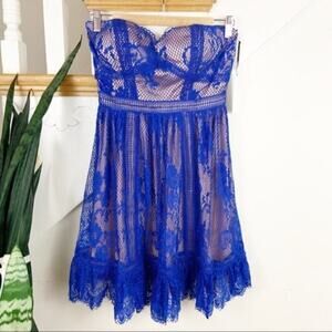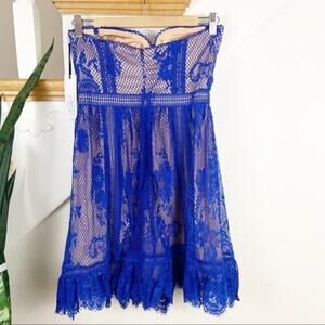 RYSE by lulus Jade Royal Blue and Nude Lace Strapless mini dress size small