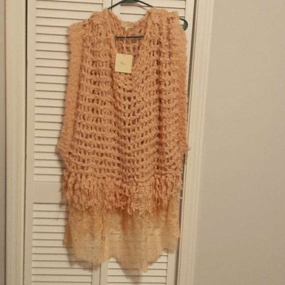 Dusty Rose crocheted shawl with laced bottom and tassels