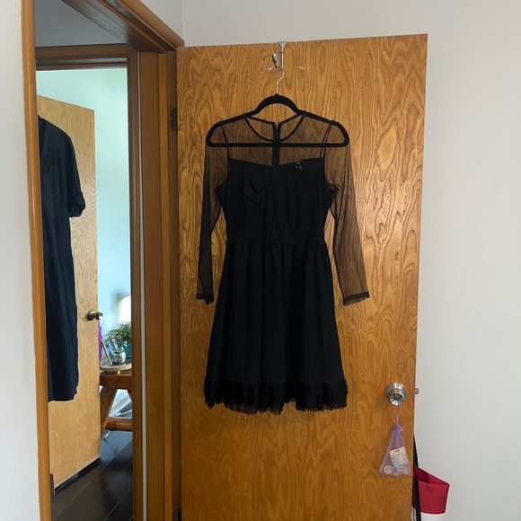 RYU Anthropology NWOT black mini dress w/sheer mesh long sleeves tulle hem Small