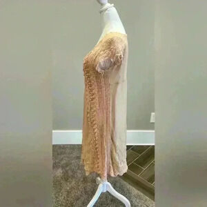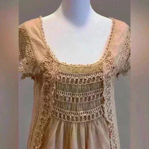RYU Women's Boho Flowy Mini Tan crochet top with lace detailing vintage style size medium