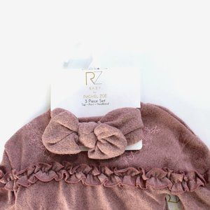 Brand new with tags RZ Baby by Rachel Zoe 3 Piece Set Long Sleeve Top, Pant & Headband Size 0-3 Months - Mauve