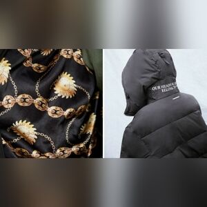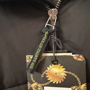 If you know your kung fu flicks, you may recognize the stitched quote on the back of the hood from the 1976 cult classic film Master of the Flying Guillotine: “Our Heads No Longer Belong to Us.” The jacket’s interior features a colorful design resembling the flying guillotine—a legendary weapon featuring in countless kung fu movies.