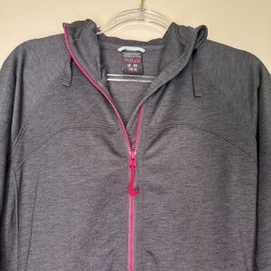 Rab women's size small S Top-Out athletic running thumb holes gray zip hoodie