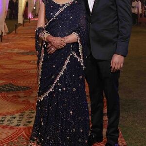Size M . Blouse 40 size , cap sleeves , 15 inch length . Lehenga 43 inch length , 36 inch waist . Duppatta included . Gently worn once .