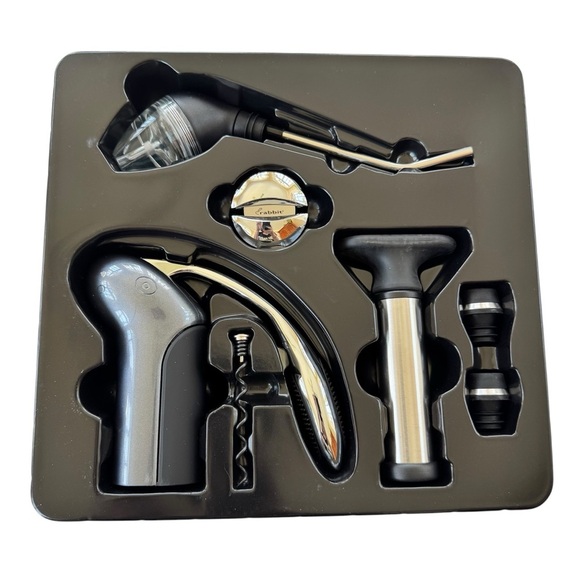 Rabbit 7-Piece Wine Bar Gift Set Manual Corkscrew Vacuum Pump Foil Cutter NIB
