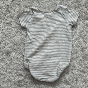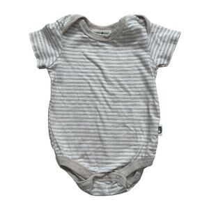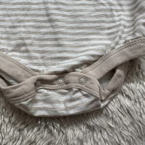 Rabbit + Bear 6-9M Organic Cotton Tan White Striped Snap Onesie Tee Short Sleeve