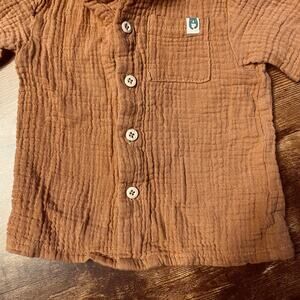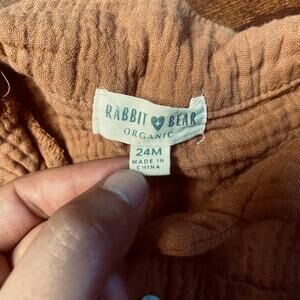 Rabbit + Bear Brown Organic Cotton Gauze Short Sleeve Button Up Shirt Baby Size 24M 24 Months