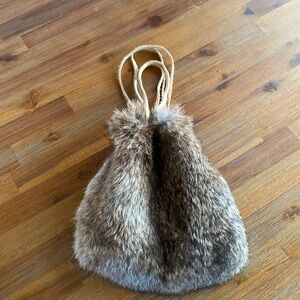 Rabbit Fur Purse/Pouch, raw leather Drawstring.