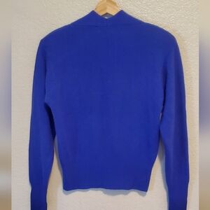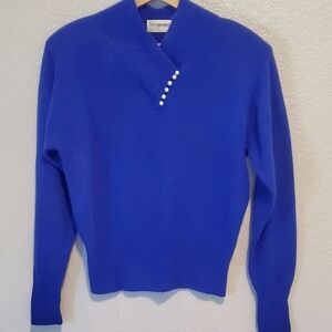 Rabbit Hair & Lambs Wool Royal Blue Knit Sweater with Pearl Buttons Size Medium