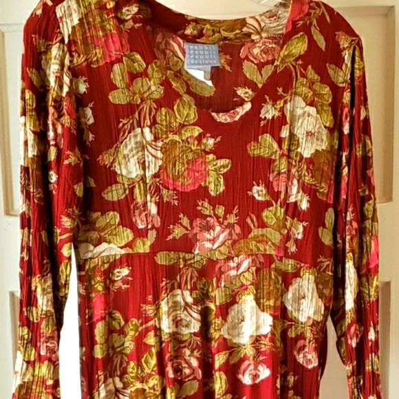 Vintage Rabbit Rabbit Midi dress. 3/4 length sleeves, length below knees, shoulder pads were removed, fabric feels nice and flows. A very comfortable dress and great for all seasons!