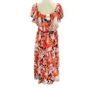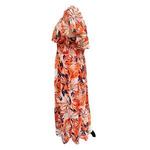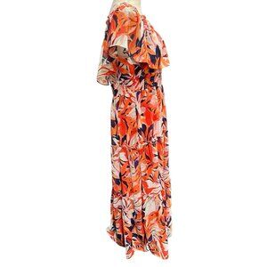 Rabbit Rabbit Dress Womens 16P Floral Chiffon Off Shoulder Tiered Maxi Vacation