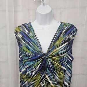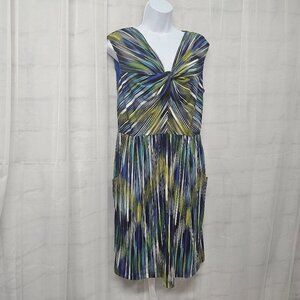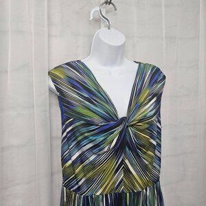 Rabbit Rabbit Rabbit Blue Green Abstract Striped Sleeveless Dress 10P