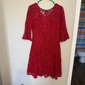 Chic burgundy lace dress with long sleeves. Perfect for elegant occasions.