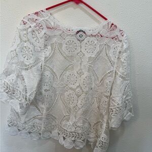 Elegant white lace top perfect for any occasion. Features intricate patterns for a stylish look.