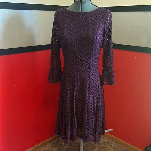 Rabbit Rabbit Rabbit Deep Purple Crochet Long Sleeve Dress