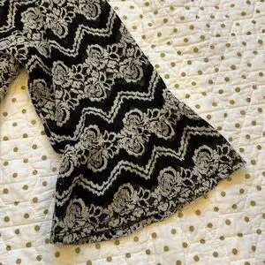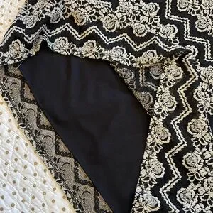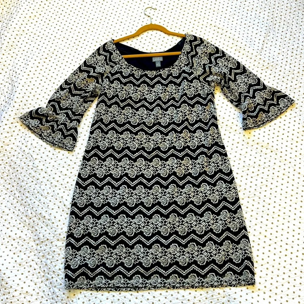 Size 16 Stretch lace fabric has some give. Body Fully lined & ruffle bottom sleeves are not. Cute dress. Fits me perfect right above the knee & I am 5’2”
