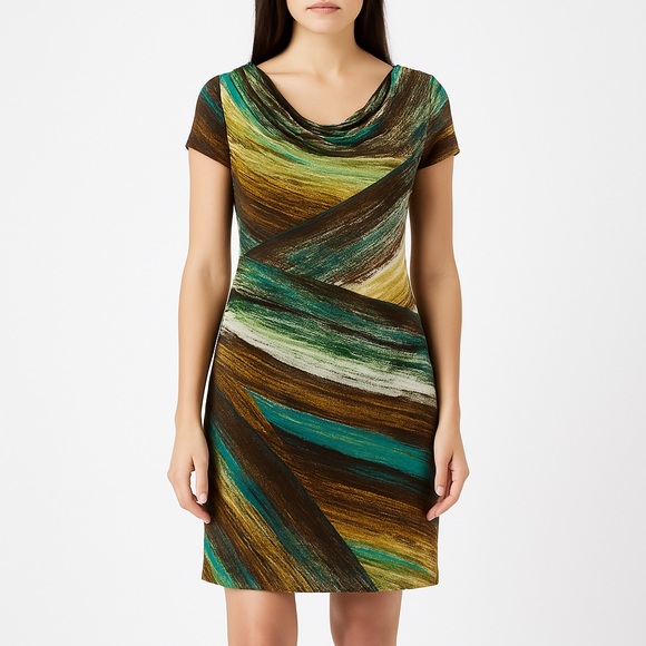 Rabbit Rabbit Rabbit Designs Abstract Cowl Neck Stretch Dress Size 12