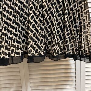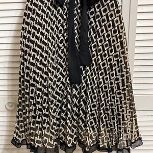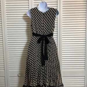 Excellent used condition, rabbit rabbit, rabbit designs black and cream colored belted dress ! Beautiful sleeveless black-and cream dress with all around pleated skirt and a cute black sash that ties in the back at the empire waist. Cute black Ruffle hem! Fully lined with invisible back zip.The the fabric is a carefree polyester that washes beautifully.
