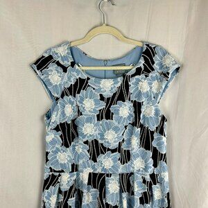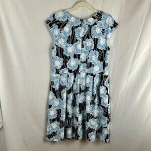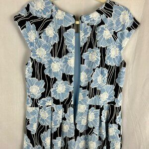 Rabbit Rabbit Rabbit Designs Floral Dress Women 14 Blue Black A Line Knee Length