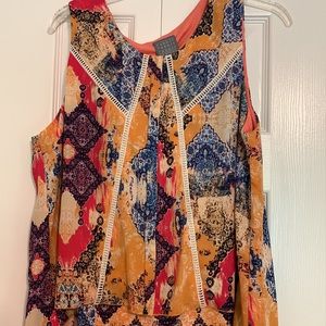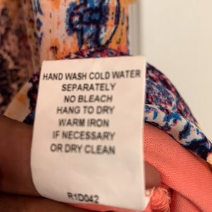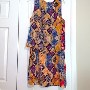 Perfect Spring/Summer Dress, Size 16, Fully Lined, 100% Polyester Dress & Lining. NWOT. Colors include Peach, Pink, Blue and white. The top layer is separate from dress and is around the entire top portion of the dress.