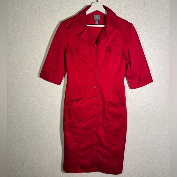 Rabbit Rabbit Rabbit Designs Red Jacket Dress with Button Front & 3/4 Sleeves